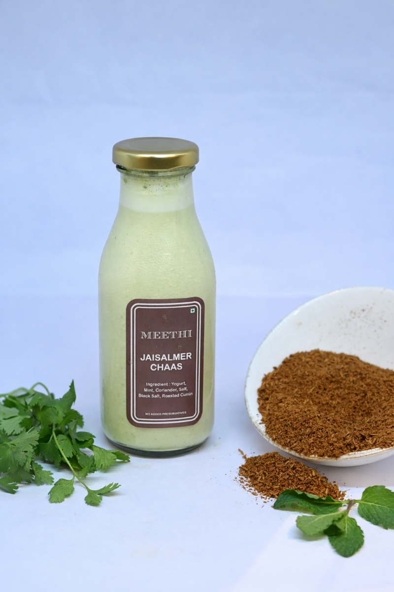 Go to the shopRajasthani spiced buttermilk with roasted cumin and dessert herbs for a cooling savory sip.